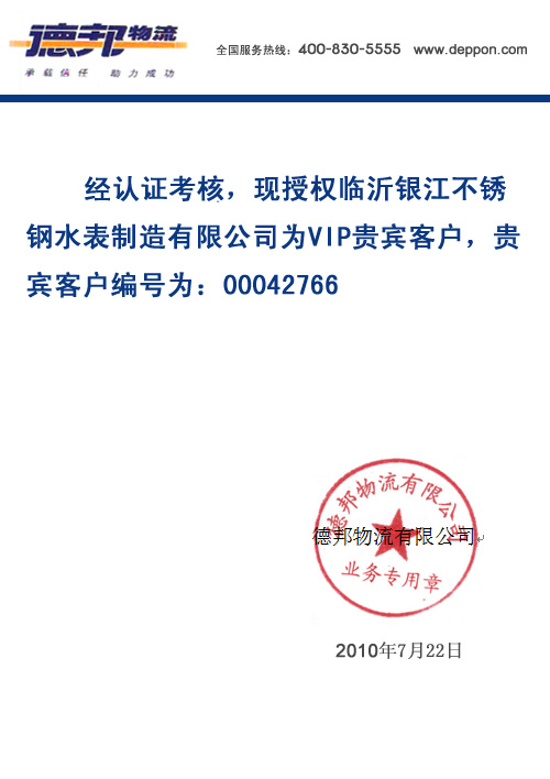 德邦物流是國家AAAA級綜合服務型物流企業(yè),阿里巴巴網絡公司的物流合作伙伴,專業(yè)從事國內公路運輸和航空運輸代理,2010年7月22日,經過德邦物流嚴格審核,我公司成功與德邦物流簽署合作伙伴關系,這標志著我公司得產品托運業(yè)務又邁上了新臺階,不僅滿足了貨物在專業(yè)包裝,貨物追蹤,報價運輸?shù)热诵曰矫娣⻊眨疫_到了安全,快捷方便,時刻為客戶著想得理念!