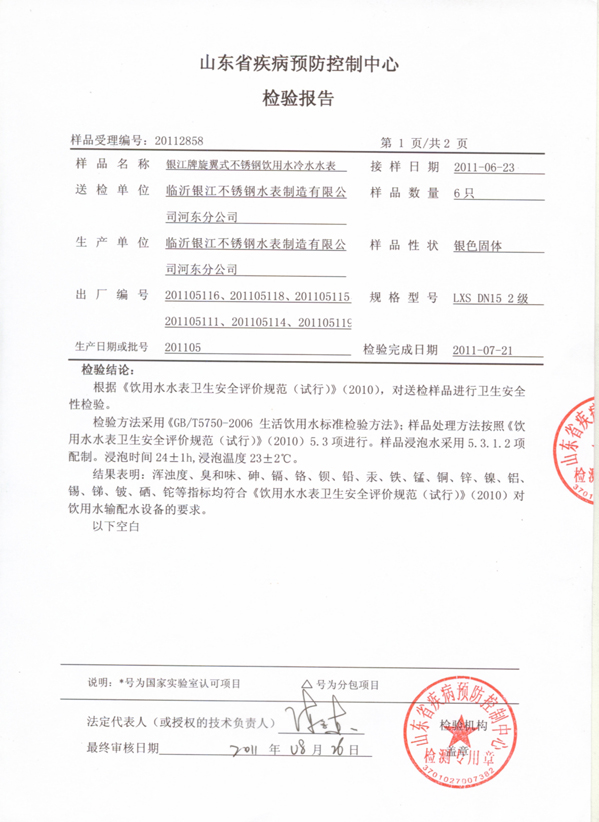 公司產(chǎn)品通過衛(wèi)生廳檢測(cè)通過!