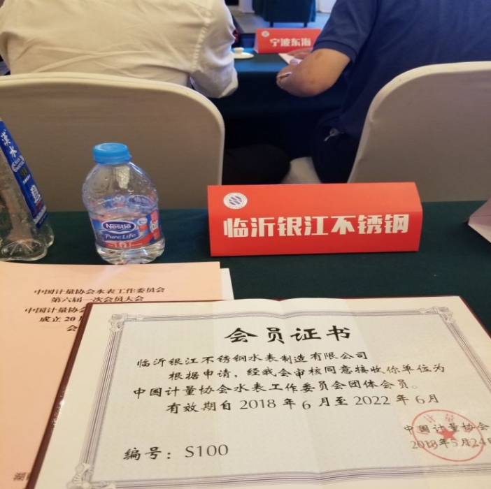 2018年5月17日,中國計量協(xié)會水表工作委員會第六屆一次會員大會暨水表工作委員會成立20周年慶祝大會在美麗的湖南長沙召開,我司作為不銹鋼水表廠家代表積極參加并投票選舉了新一屆的委員會委員,會上聽取了上海市質(zhì)量技術(shù)監(jiān)督局總工史子偉先生對計量法的解讀及如何通過技術(shù)方法做好水表產(chǎn)品事中事后質(zhì)量監(jiān)管與提升的報告,臨沂銀江不銹鋼水表愿與水表同仁們攜手共進,共創(chuàng)輝煌!